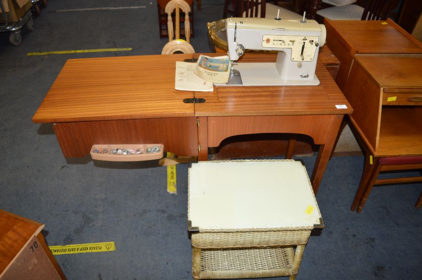 Singer 457 Electric Sewing Machine plus Lloyd Loom Style Sewing Box