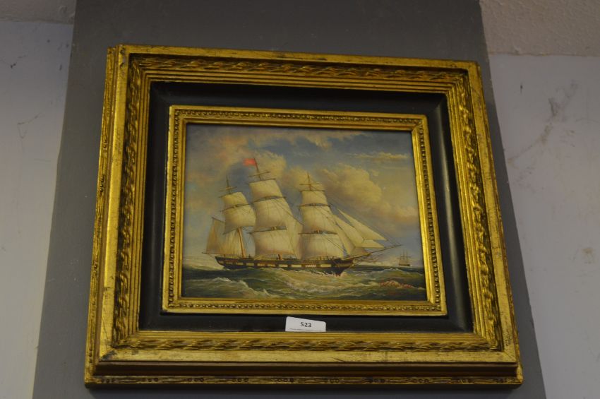 Reproduction Gilt Frame with Picture of a Sailing Ship