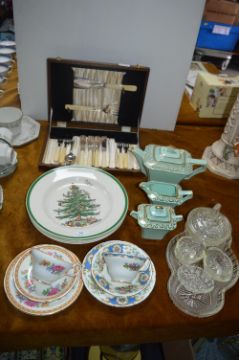Cutlery Canteen plus Christmas Plates, Teapot, etc.