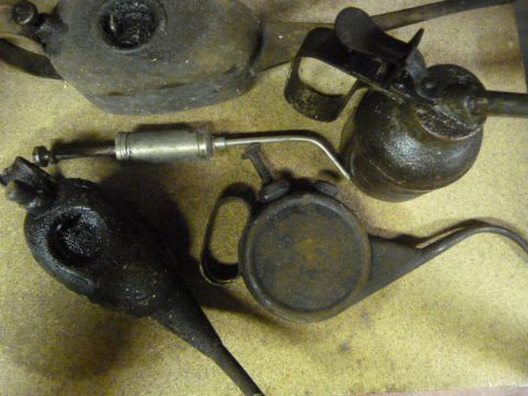 Vintage Raybone Spirit Level and Small Collection of Oil Cans