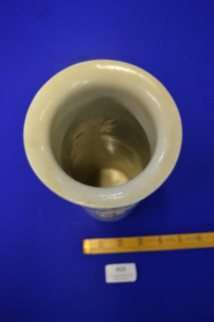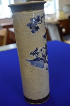 Chinese Blue & White Vase Depicting Two Courtesans and Attendants under a Prunus Tree 10" height