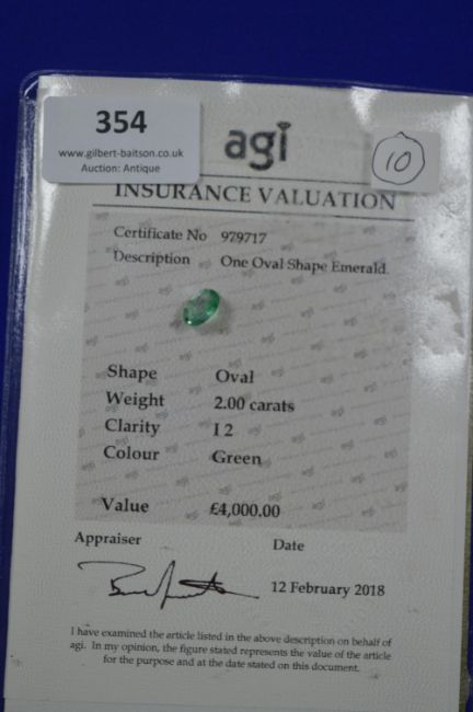 One Oval Emerald ~2.0 carats, Clarity: 12, Colour: Green