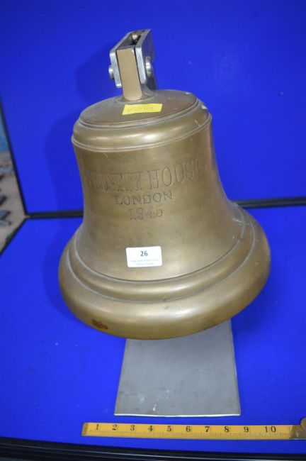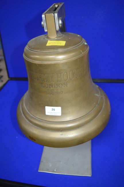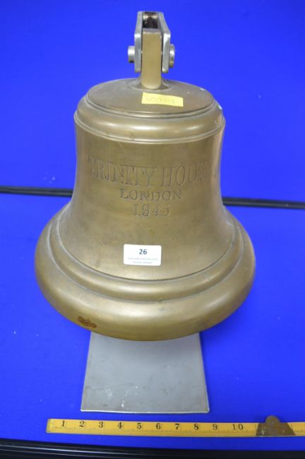 Maritime Brass Bell on Steel Stand Inscribed; Trinity House, London 1945