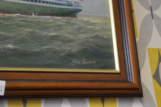Signed Framed Oil on Board of the SS Aaro by Max Parsons