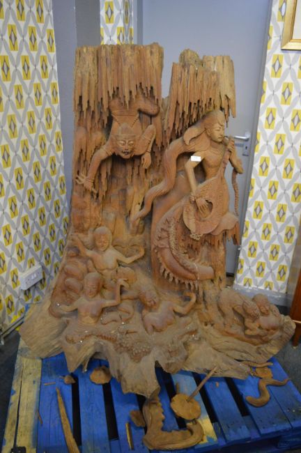 Indonesian Carved Teak Wood Stump Featuring Mermaid (AF)