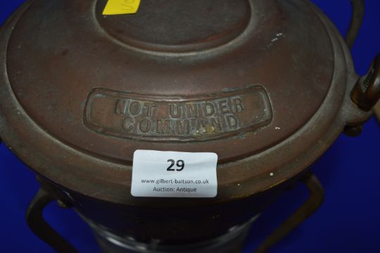 Seahorse Brand Copper Portside Ships Lamp; Not Under Command