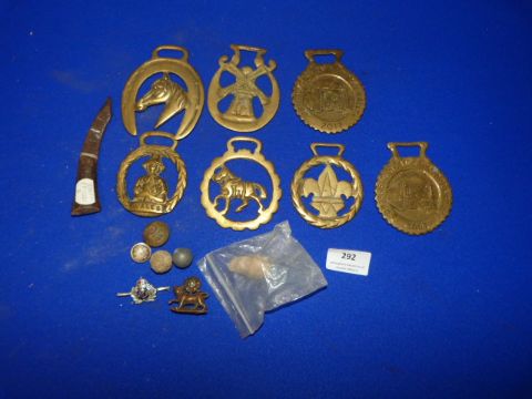 Miscellaneous Lot including Horse Brasses, Cap Badges, Musket Balls etc