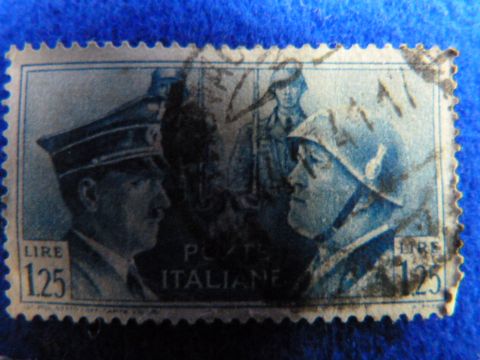 Wehrmacht Cloth Breast Eagle (believed to be original), and an Italian Stamp Depicting Hitler and Mussolini