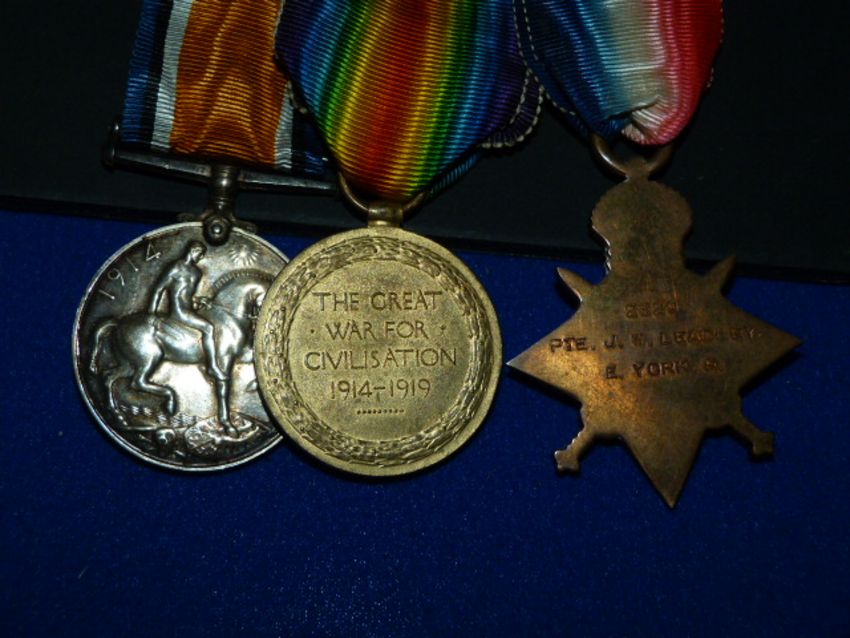 WW1 Trio to PTE JW Leadley East Yorks Regiment