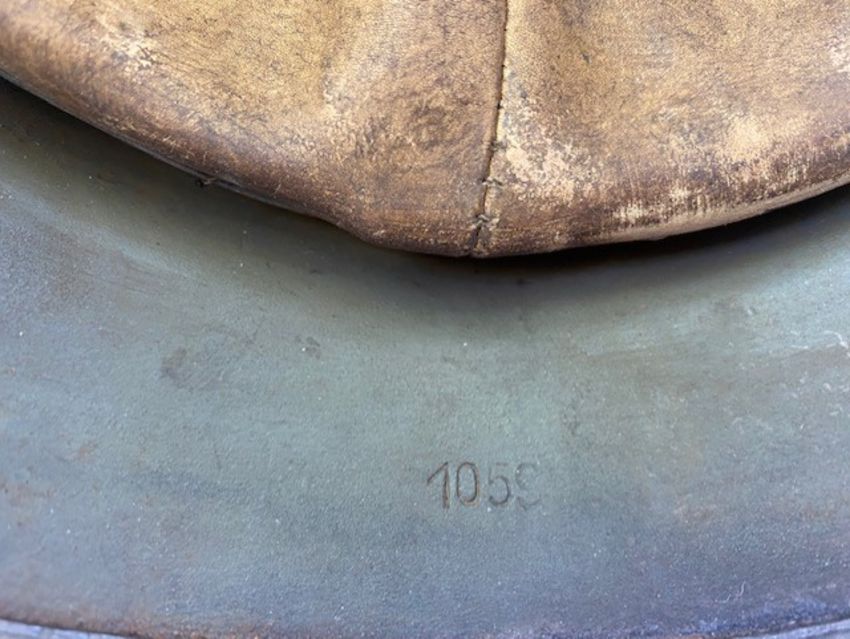 Double Decal SS Helmet with Normandy Camo Finish - Rust Patina to Inside