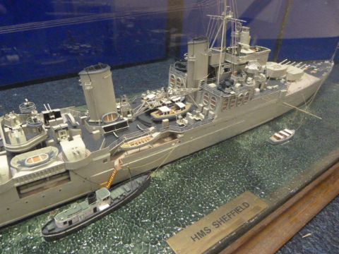 Scale Model of HMS Sheffield (WW2) in Glass Case - Case Measures Approx - 108 x 32 x 33cm