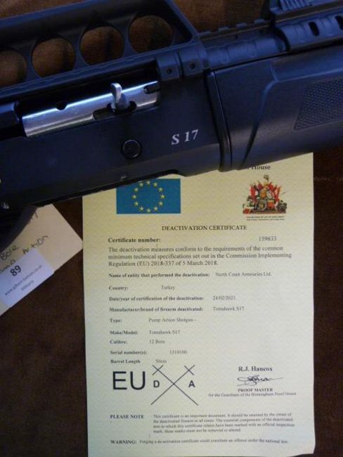 Tomahawk S17 12 Bore Pump-Action Shotgun with Current Deactivation Certificate