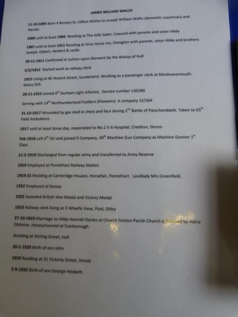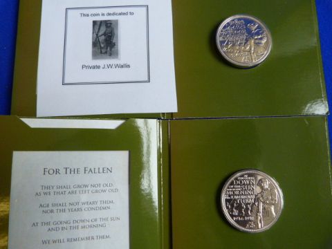 WWI Centenary Coins Dedicated to Private J.W. Wallis with Laminated Photo and Service History