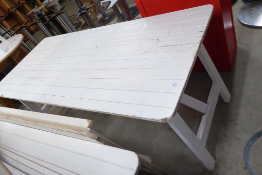 * white plank effect folding trestle style display table. 1800w x 800d x 720h