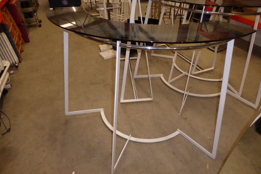 * Semi-circular clothes display rail with smoked glass top shelf 1800 x 800 x 1300