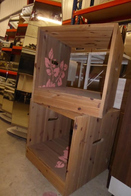 * Pair of decorative pine display crates with flower motif 500 x 500 x 500