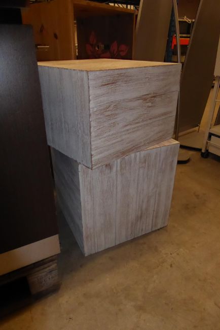 * Pair of decorative display plinths driftwood effect (45 x 45 x 45) and (45 x 45 x 30)