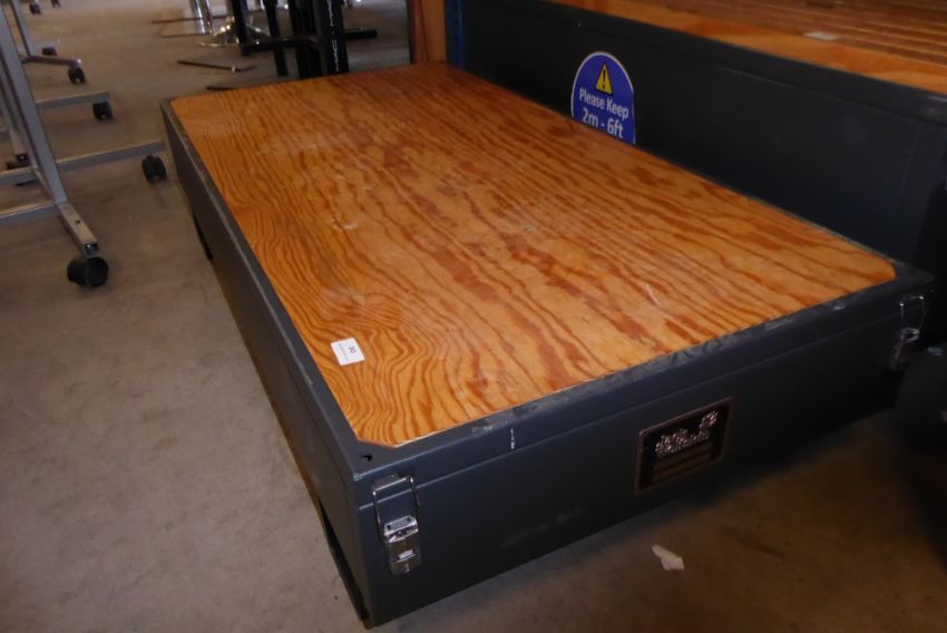 * industrial low level steel display plinth coffee table with ply infill 1200w x 600d x 250h