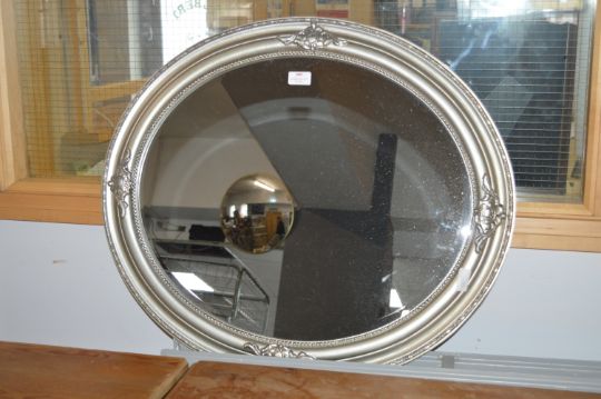 Silver Framed Oval Beveled Edge Mirror