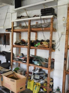 Two Bays of Wood Shelving Containing Assorted Car Stereos, Vehicle Lamps, Filters, etc.