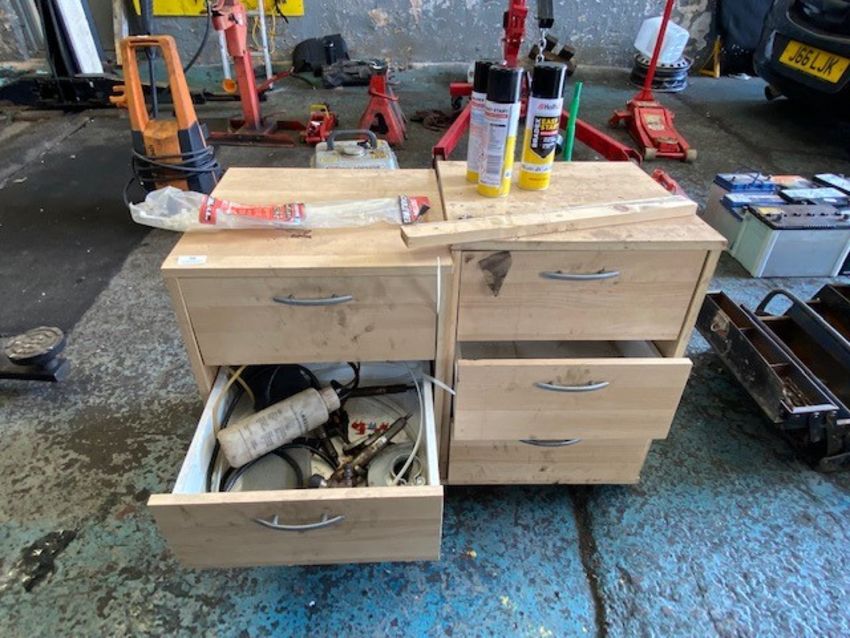 Pair of Three Drawer Bedside Cabinets Containing Assorted Tools, Easy Start, etc.