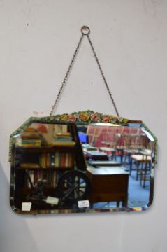 1930's Beveled Edge Mirror with Floral Design