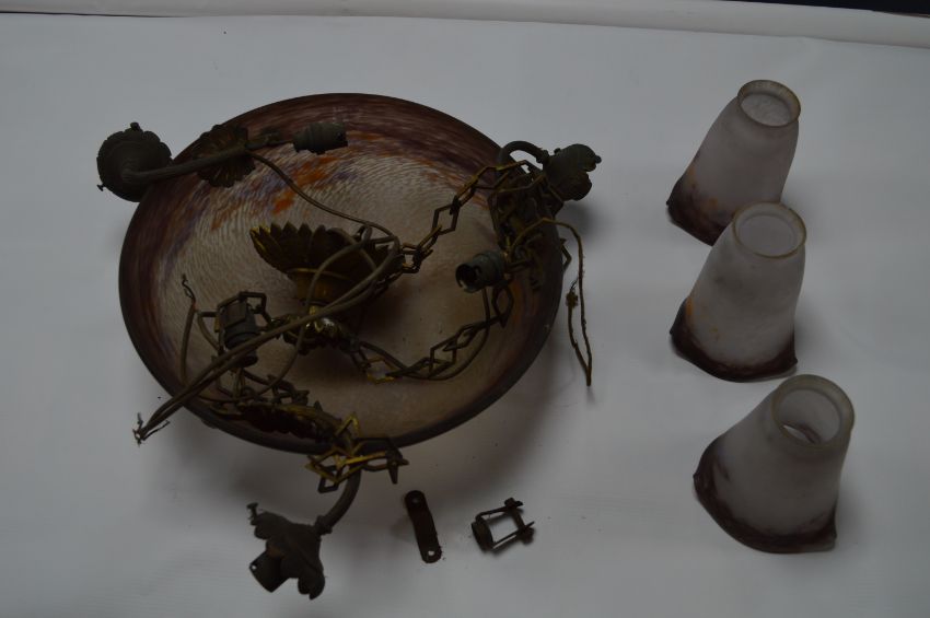 French Glass Chandelier by Degue circa 1920 Complete with Brass Ceiling Fittings