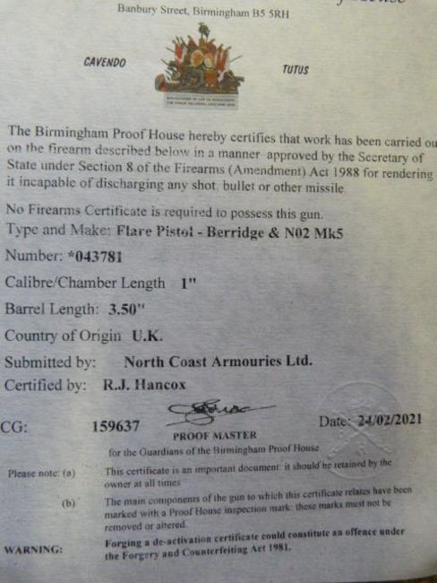 Berridge No.02 Mk.V 1" Flare Pistol with Current Deactivation Certificate