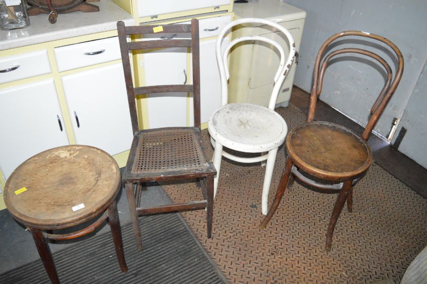 Two Bentwood Pub Chairs, Stool, and One Other Chair