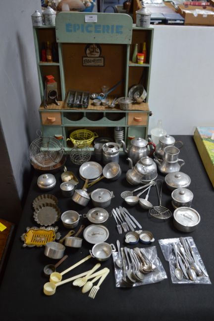 1940's Child's Wooden Hardware Store with Kitchenware Made in France