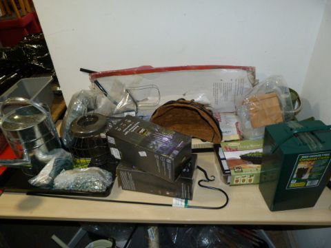 Lots to include New Gardening Equipment and Decorative Items, Pet Accessories, Haberdashery, Pallets of Carpeting etc……….