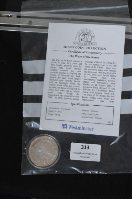 Westminster War of the Roses £5 1oz Silver Proof Coin (issued: Gibraltar)