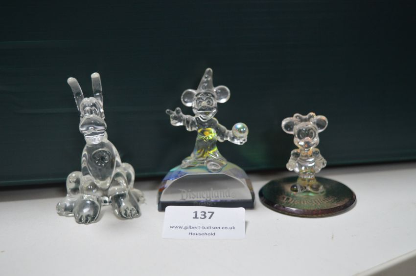 Three Disneyland Glass Figures; Mickey Mouse, Pluto and Minnie