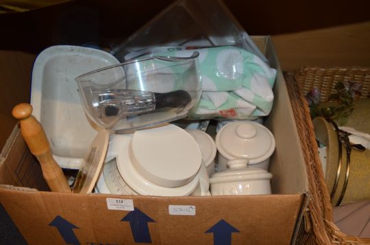 Box of Kitchenware; Storage Jars, Mixing Bowls, etc.