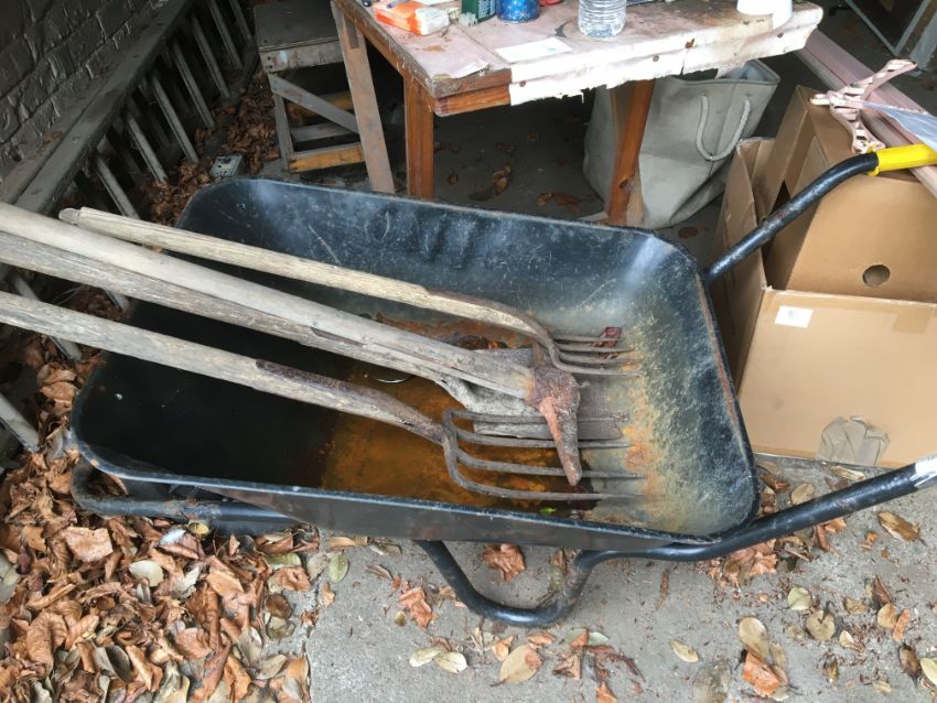 Wheelbarrow and Antique Gardening Tools