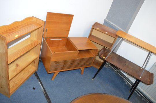 Two Bookshelves, Teak Music Cabinet, and Two Coffee Tables