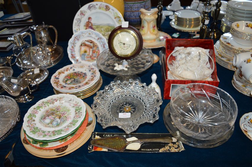 Pottery and Glassware Including Royal Doulton Brambly Hedge Plates, Royal Copenhagen Snow Baby, etc.