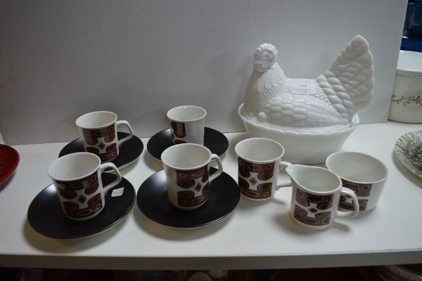 Meakings Part Tea Set and a Milk Glass Chicken Egg Holder