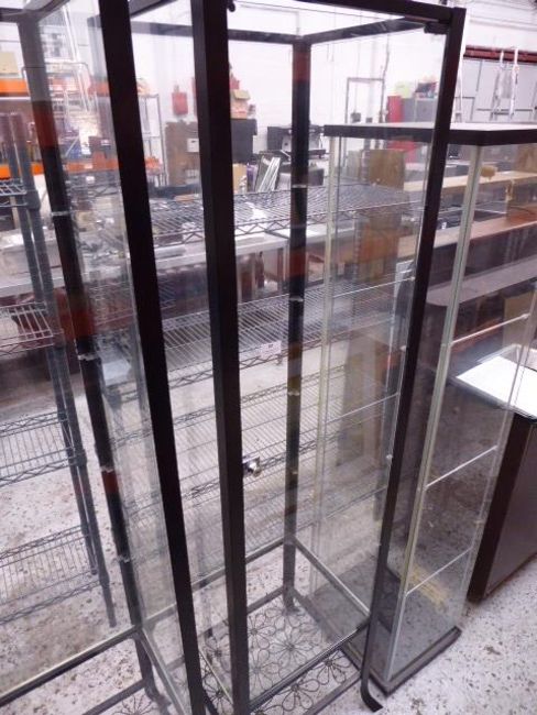 *tall glass shelf display tower with door black frame 450 x 400 x 18 00