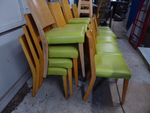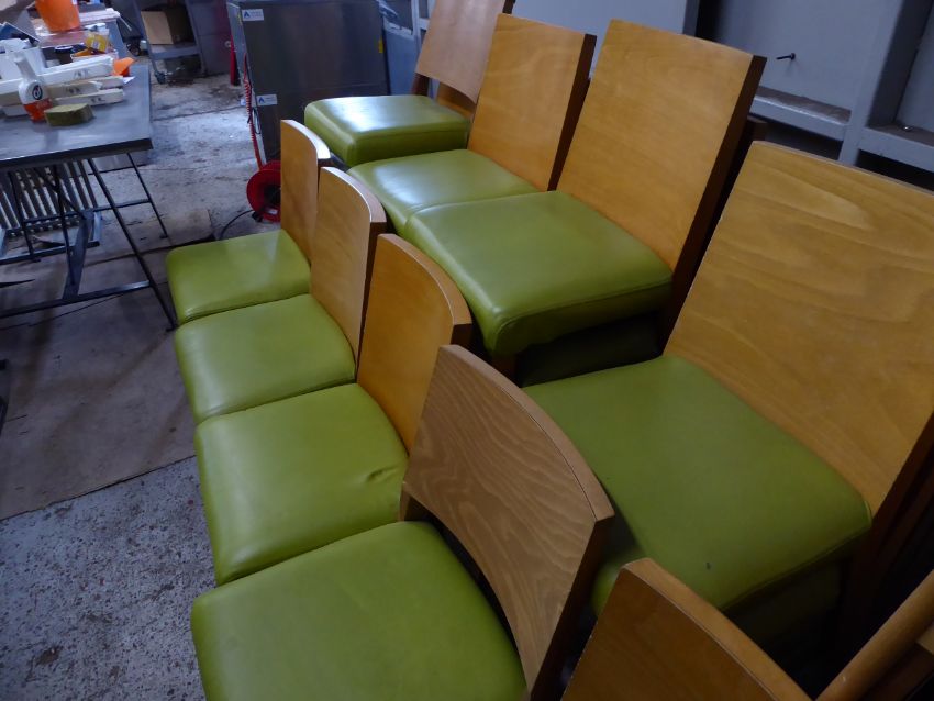 *21 green upholstered dining chairs wooden frame and backs