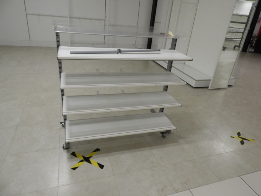 1000 Lots to include: - Multiple NCR Epos Systems, Electronic Stock Control Devices, Store Security System, Point of Sale Counters, Superior Shop Fittings, Garment Rails, Mannequins, Display Tables and Counters, Feature and Designer Lighting, Large Quantity of Quality Stock Room Racking and Shelving, Kick Stools, Aluminium Steps, Mirrors, Etc. Etc. Etc.