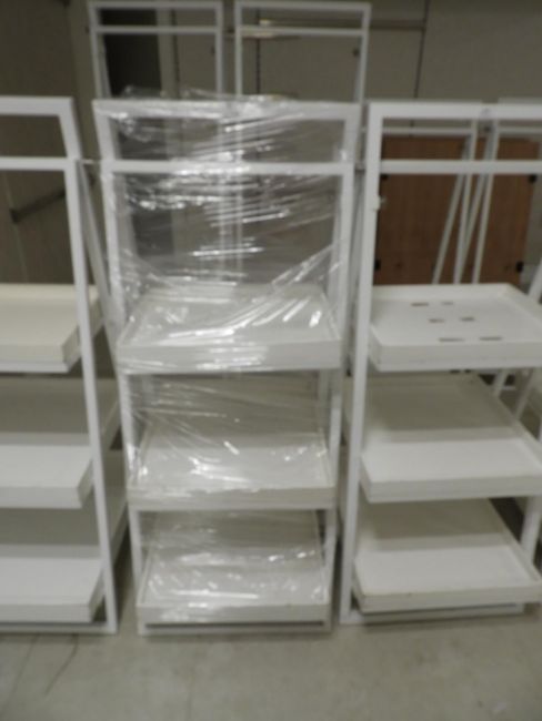 1000 Lots to include: - Multiple NCR Epos Systems, Electronic Stock Control Devices, Store Security System, Point of Sale Counters, Superior Shop Fittings, Garment Rails, Mannequins, Display Tables and Counters, Feature and Designer Lighting, Large Quantity of Quality Stock Room Racking and Shelving, Kick Stools, Aluminium Steps, Mirrors, Etc. Etc. Etc.