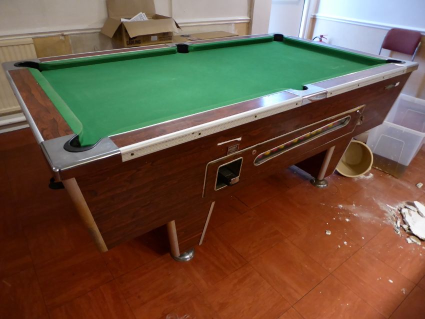 * superleague 7-ft pub pool table coin mechanism complete set of balls and overhead lamp