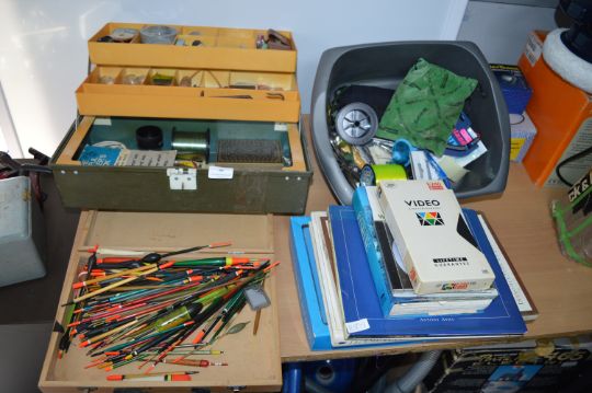 Fishing Tackle Box and Contents, Floats, Books, etc.