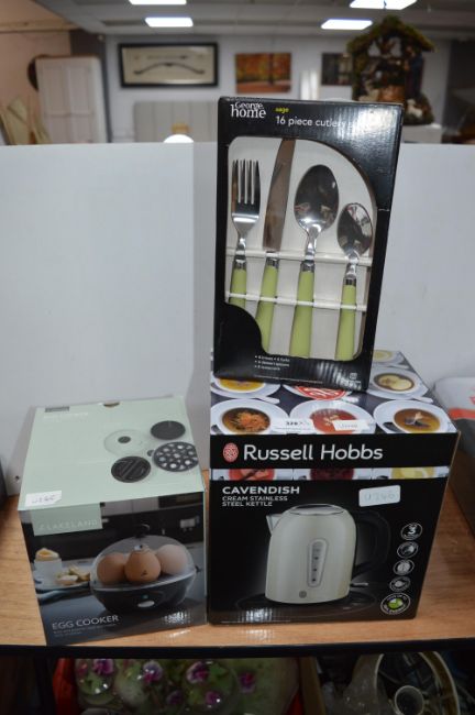 Russell Hobbs Kettle, 16pc Cutlery Set, etc.