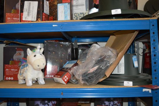 *Inflatable Santa, Assorted Lights, Tree Stand, and Unicorn (AF - Salvage)