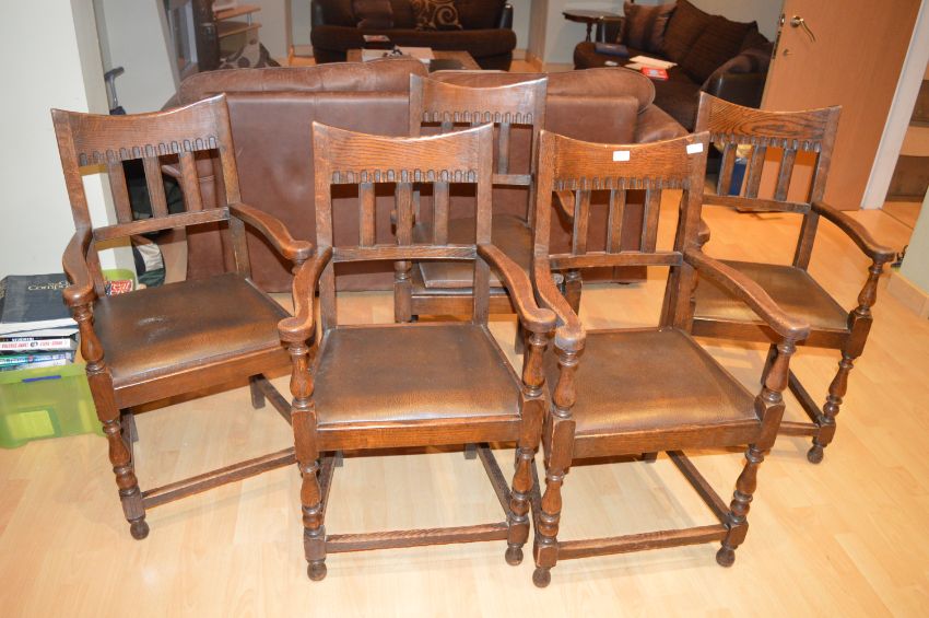 Five Oak Carvery Chairs with Upholstered Seats