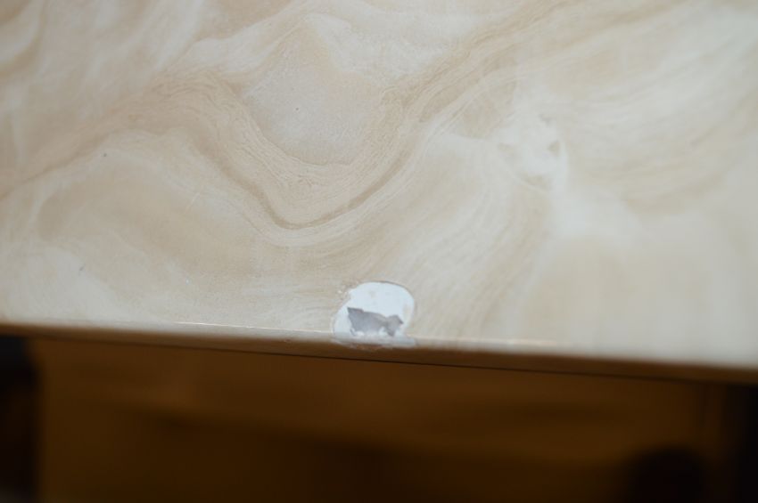 Marble Effect Dining Table on Single Support (slight damage) with Six Chairs