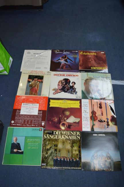Hi Fi Cabinet Containing Rotel Audio System, Classical Records, and Cassettes