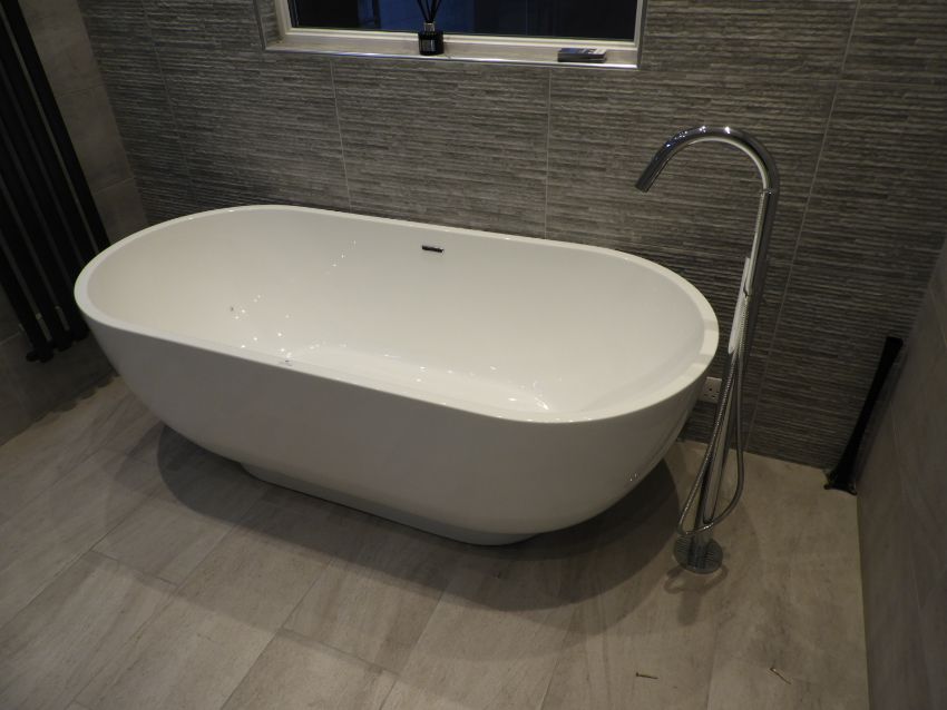 *Acrylic Slipper Bath with Contemporary Style Floor Standing Pillar Tap